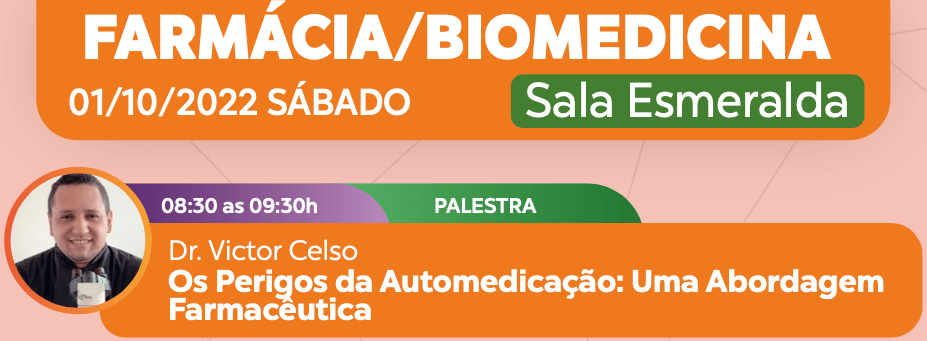 Na ocasião, irei palestrar no dia 01/10 na sala Esmeralda com o tema: Os Perigos da Automedicação: Uma Abordagem Farmacêutica.