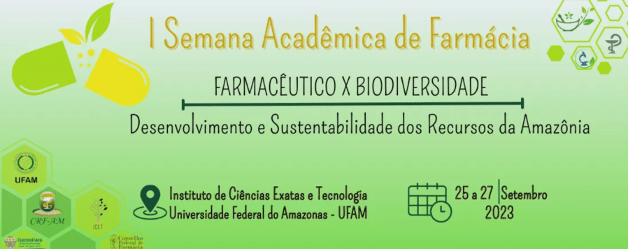 A primeira Semana Acadêmica de Farmácia trata-se de um evento promovido pela Universidade Federal do Amazonas – UFAM, campus ICET, onde o mesmo ocorre de forma híbrida, tanto on-line como presencial. As inscrições são gratuitas e liberadas para o público geral, sendo garantido o certificado ao final do evento em caso de presença confirmada (vide informações com a organização).